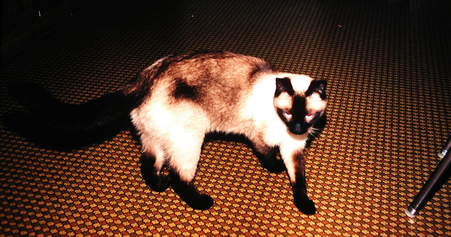 We learn in the first sentence that Don is a privileged cat with his own house. Cats were revered in ancient Egypt, and the goddess Bastet had a temple dedicated to her. Japan is a modern country with more than five notable temples featuring cats, including Gōtoku-ji Temple in Tokyo. The historic inspiration for Don was a half-Siamese cat who lived in the writer’s house in Hugo, Minnesota (ca. 1970-1985). Cheerio, or Cheerios as he was sometimes called, was so named because his coat resembled a burnt breakfast cereal “O” of the same name.